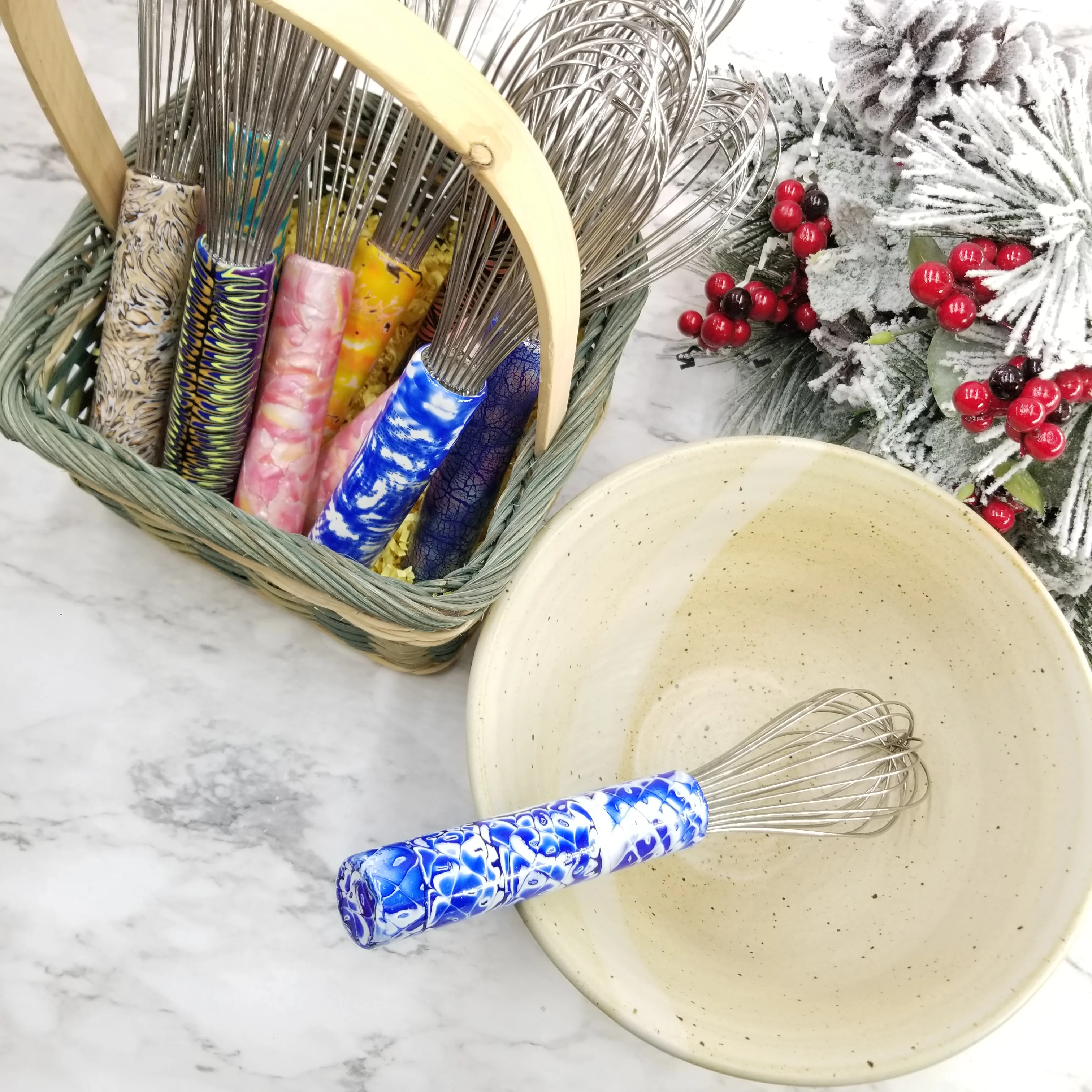 Kitchen Hand Whisk - Handmade Marble Clay Art